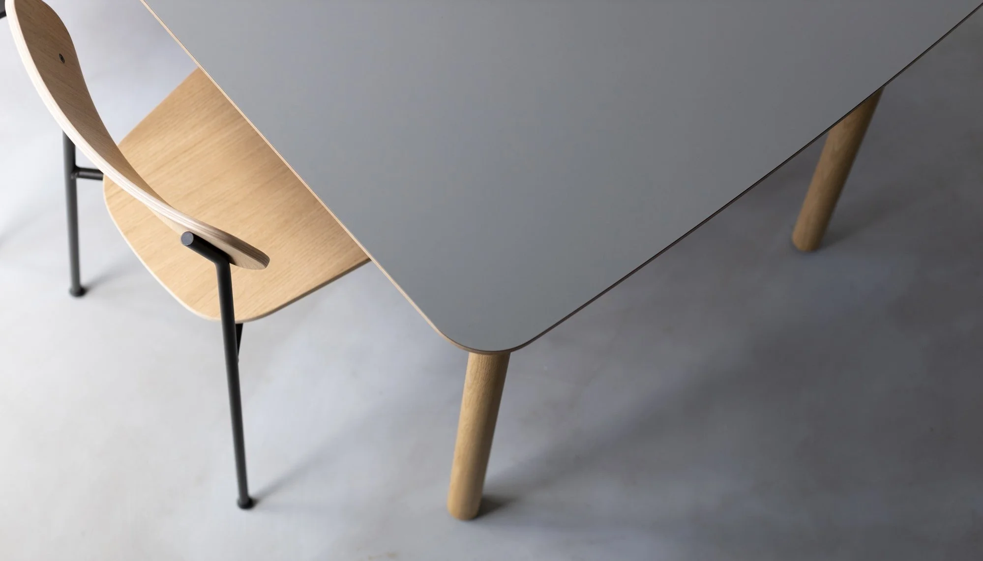 In short it’s a laminate material just like formica with the characteristics of Linoleum. We use Fenix on our Otis table because it’s soft to touch, ultra matt, anti-finger print, ultra durable and available in some nice muted tones that are designed to suite most interiors.